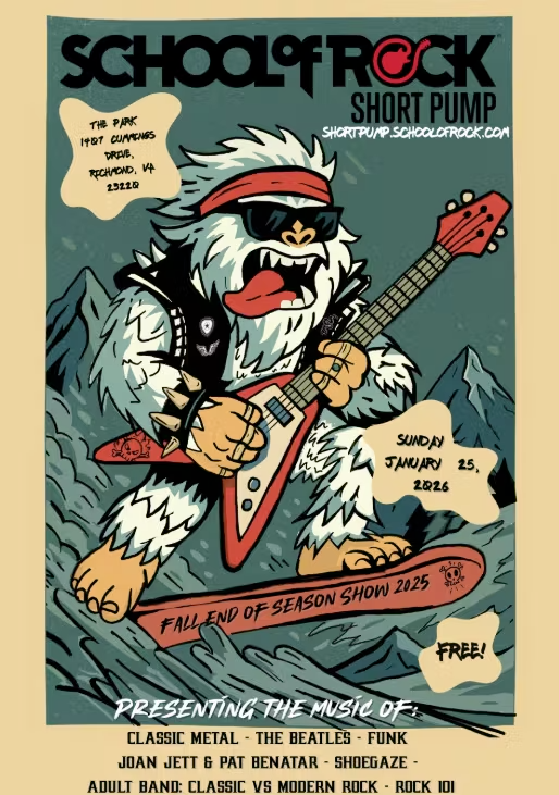 Join us at The Park RVA as we host School of Rock's Fall End of Season Show, celebrating an incredible season of hard work, growth, and unforgettable performances.